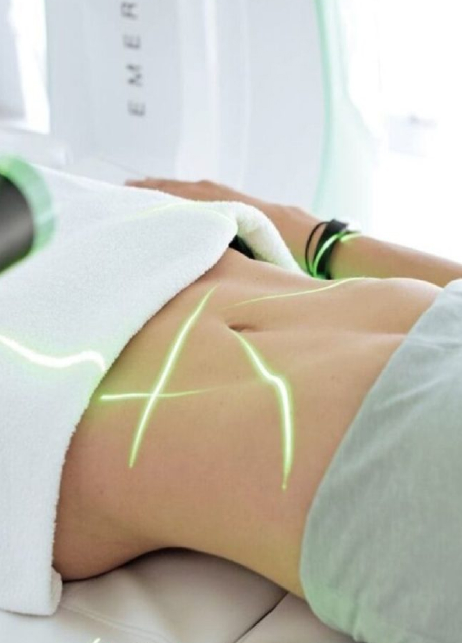Emerald Laser is our revolutionary laser fat removal treatment designed for targeting stubborn fat areas. This cold, low-level laser treatment safely reduces fat in a range of areas by stimulating natural detoxification and shrinking fat cells. This procedure is FDA approved for clinical fat loss and also has no pain or downtime, meaning you can get on with your day straight after treatment.